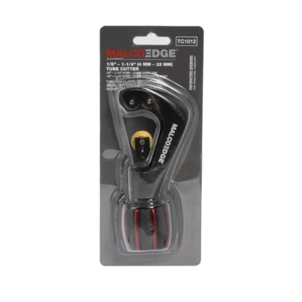The MalcoEdge™ TC1012 Tube Cutter 1/8″–1-1/4″ is built for professional-grade cutting of copper, aluminum, and steel tubing up to 0.04″ thick. This tool features a titanium-plated cutting wheel for extended life, precision cuts, and corrosion resistance. Its patented Smart Spring Design automatically advances the tool with consistent pressure, eliminating the need for manual adjustments mid-cut. The cutting wheel adjusts to the tube’s shape for smooth, even rotation, reducing effort and ensuring a clean, burr-free finish. Ideal for HVAC, plumbing, and industrial applications, this cutter offers reliability, speed, and accuracy in every cut.