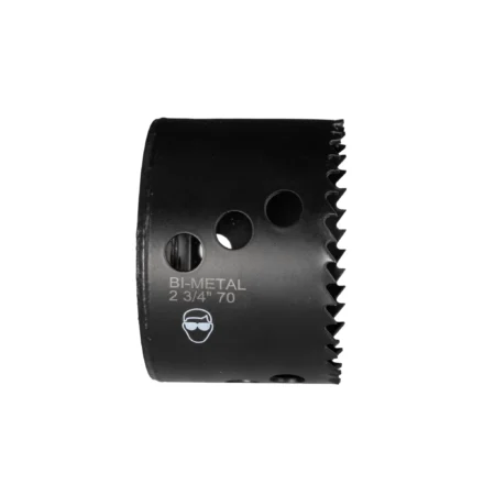 Built for consistent performance across the most common job-site materials, the Malco® 2 3/4″ (70 mm) Bi-Metal Hole Saw is designed for pros who need clean, accurate cuts day in and day out. Featuring a high-speed steel cutting edge and variable tooth pitch, it cuts smoothly through wood, drywall, plastic, aluminum, and thin steel while reducing vibration and chatter.