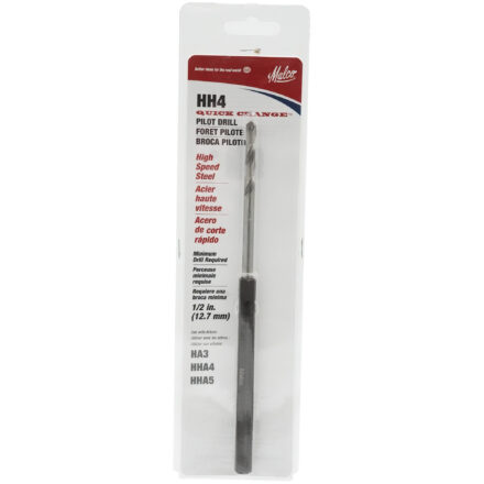 The Malco HH4 Quick Change Pilot Drill is constructed from durable High Speed Steel and integrates seamlessly with the HA3 Quick Connect Arbor. Featuring a built-in 10 mm hex shank for secure gripping in a 1/2 in. drill chuck, its 7-3/4 in. (196 mm) overall length allows the tip to extend approximately 1 in. beyond the hole saw teeth for improved performance on lap siding, rim joists, and fiber-cement cladding.